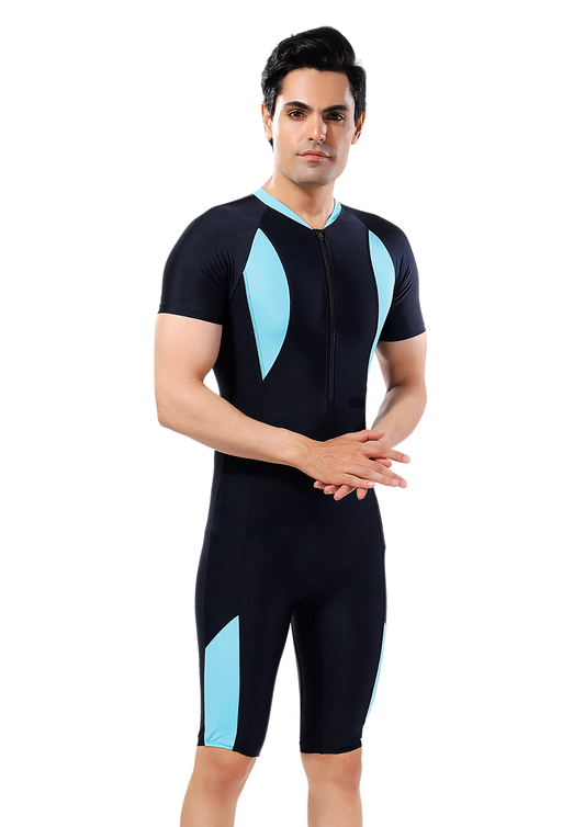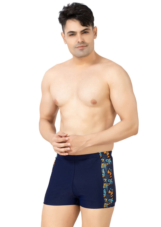 Mr India : Men's Long Swimwear with Printed patchwork on the side
